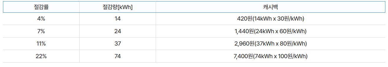 직전 2개년 동월 평균 대비 3% 이상 절감할 경우, 절감률 구간에 따라 1kWh당 30원에서 최대 100원까지 지급됩니다.